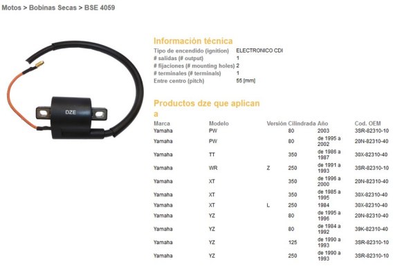 DZE CEWKA ZAPŁONOWA YAMAHA PW 80 '95-'03; YZ 80 '84-'96; YZ 125/250 '90-'93; XT 250 '84; XT 350 '85-'00; TT 350 '86-'87