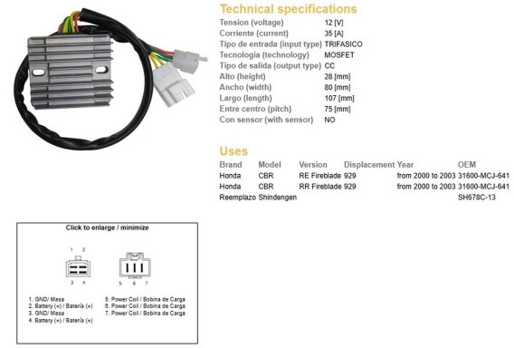 DZE REGULATOR NAPIĘCIA HONDA CBR 900RR (929) '00-'03 (SH678C-13) (ESR436;ESR430) (31600-MCJ-641)