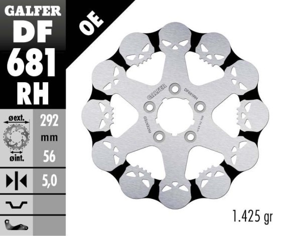 GALFER TARCZA HAMULCOWA PRZÓD / TYŁ HARLEY-DAVIDSON (292X56X5) SKULL (WZÓR CZASZKI) (PATRZ OPIS)