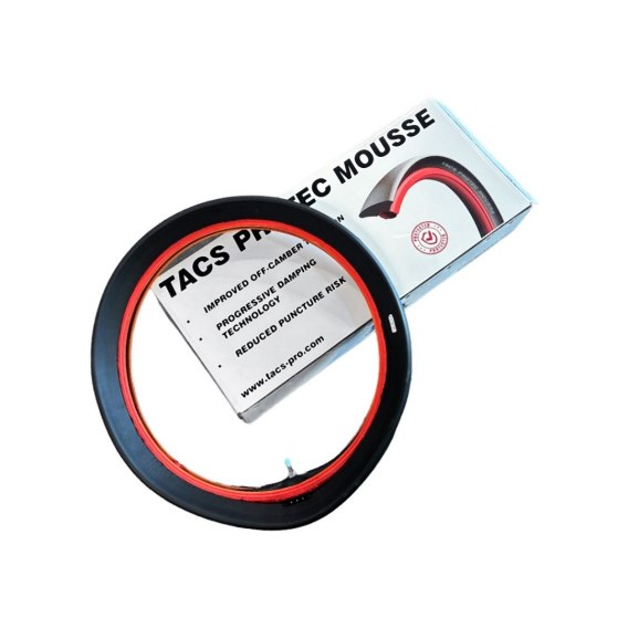 TACS PROTEC MOUSSE Został zaprojektowany, aby Twoja jazda była jeszcze bardziej szybsza i bezpieczniejsza. Zalety systemy PROTEC MOUSSE: - dodatkowa ochona systemu TUBLISS 2.0, - zmniejsza ryzyko przebicia, - zwiększa przyczepność opony do terenu, - w razie przebicia opony, wkładka daje mozliwość dojechania do mety wyścigu / celu, UWAGA: Dla większości riderów zaleca się stosowania mousse o twardości MEDIUM ze względu na jego dłuższą żywotność, szczególnie podczas przebitej opony. Mieszanka SOFT jest zalecana dla lżejszych riderów lub w ekstremanych warunkach. Przy montażu wymagane jest użycie pasty montażowej do moussów.