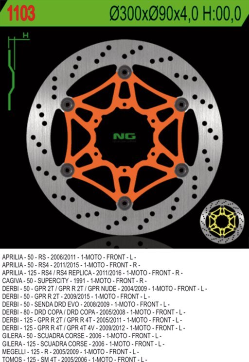 NG TARCZA HAMULCOWA PRZÓD APRILIA RS 50/125 '11-'14 (RS4), RS50 '07-'08, DERBI 50/80/125 (300X90X4) (6X6,5MM)